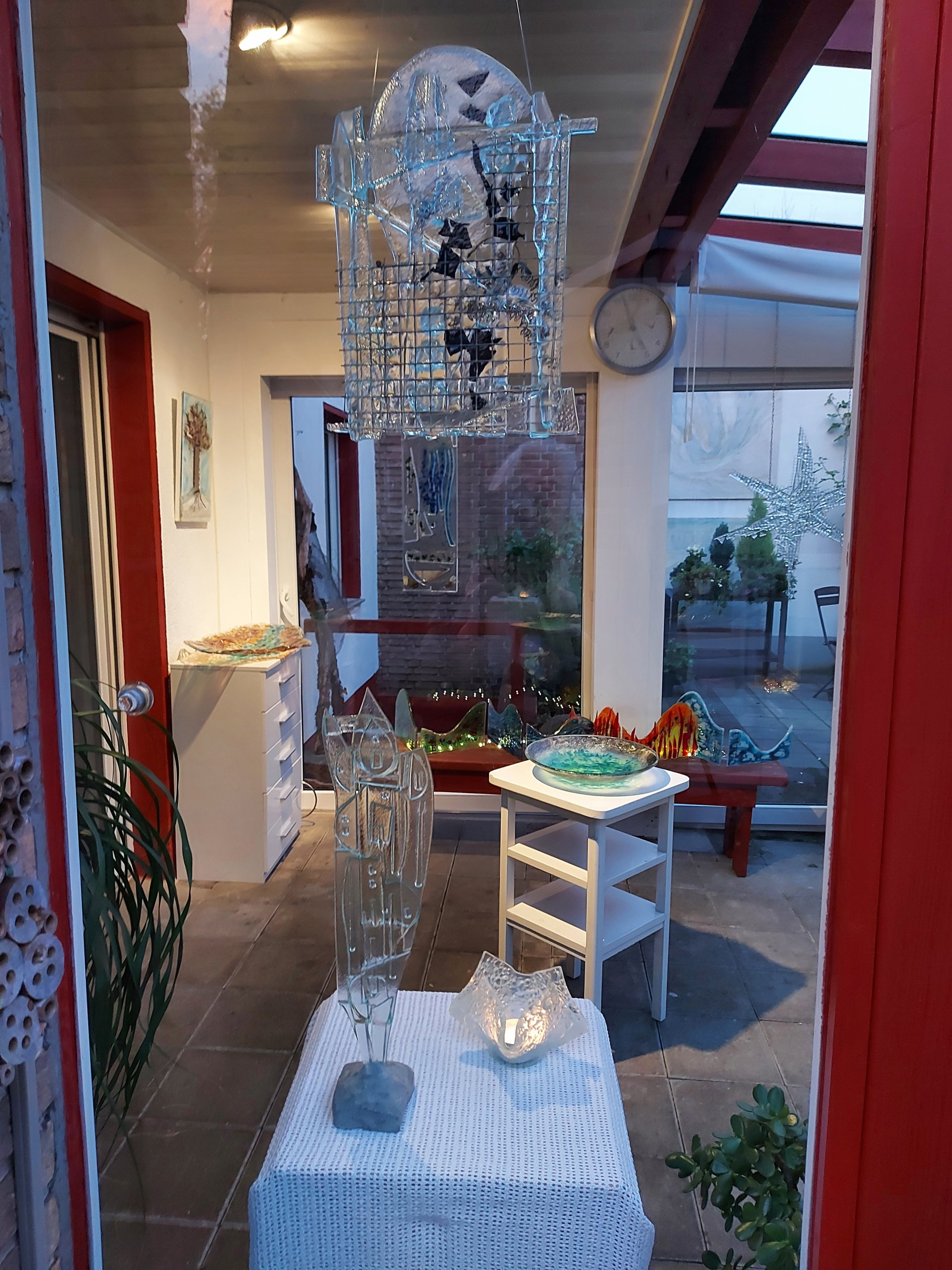 Unten: im Wintergarten, Glasfusingarbeiten von Monika Schmidt-Liffers