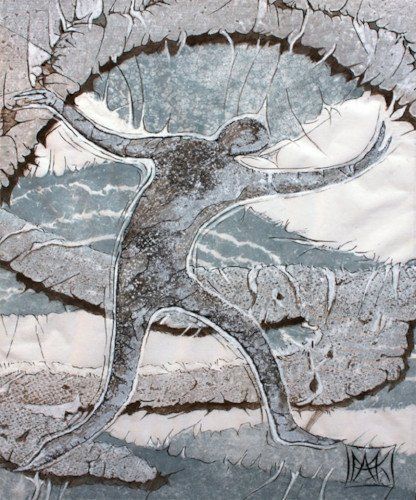 Meine Mischtechniken, auf die ich den Specht in verschiedenen Positionen positioniert und dann fotografiert habe, sind 30 x 30 cm groß und aus der Serie "ornis" von 2009.